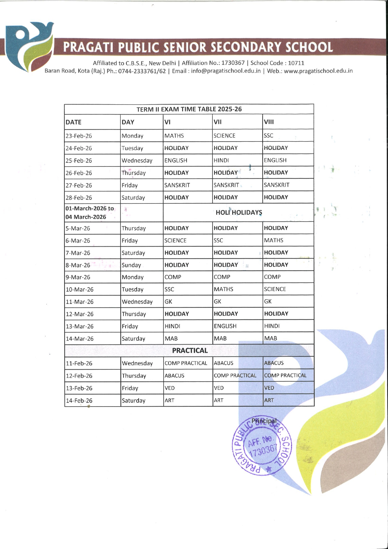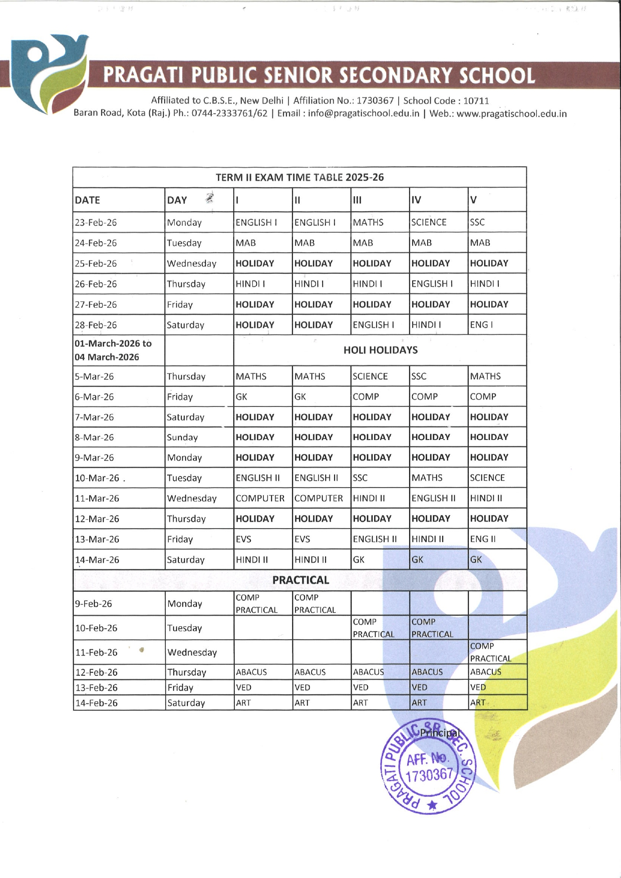 TERM II PRACTICAL EXAM TIME TABLE 2023-24 Download