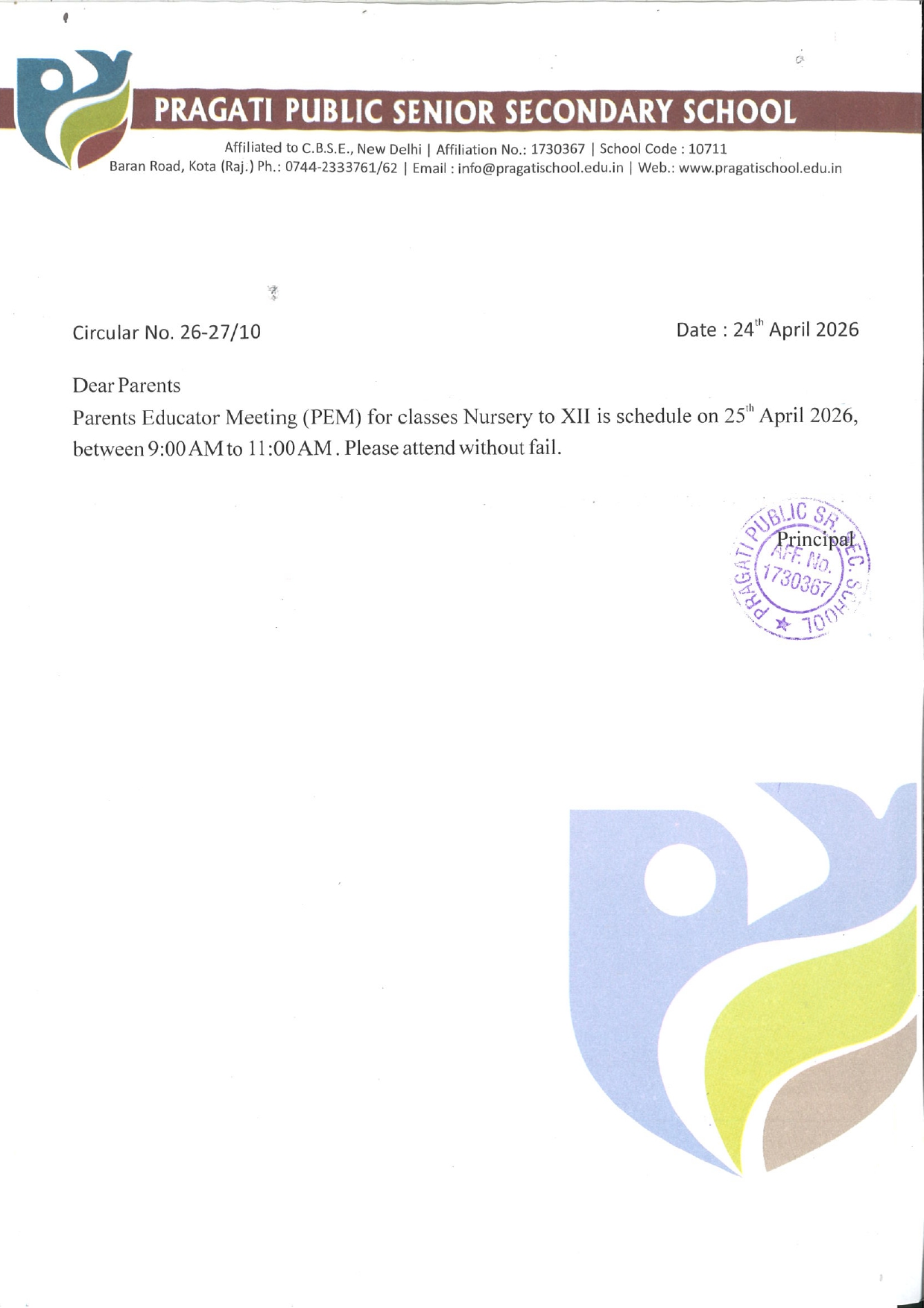 PEM MEETING (for Class Nur. to IX & XI) Download