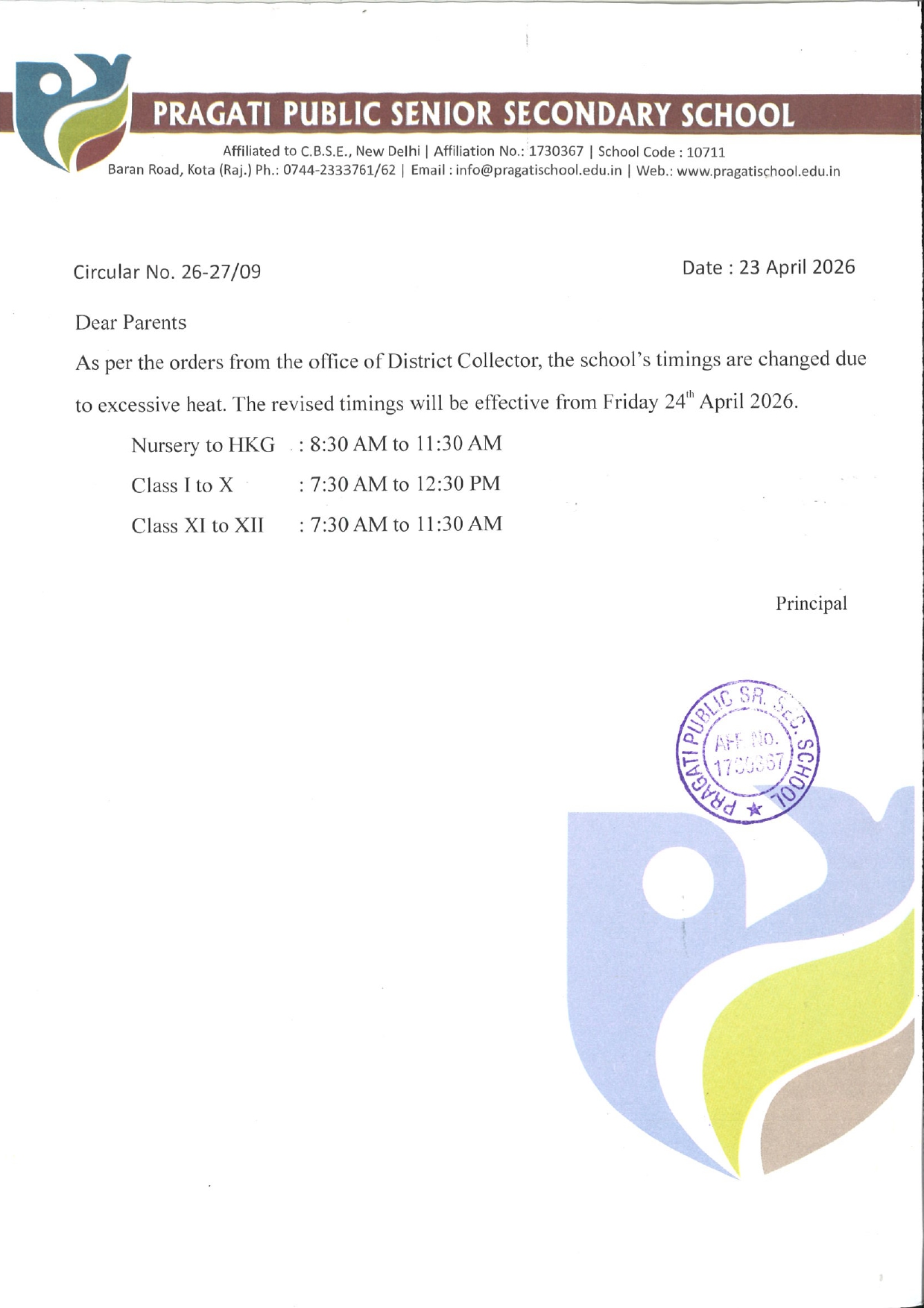 CIRCULAR NO. 01 SCHOOL TIMINGS Download
