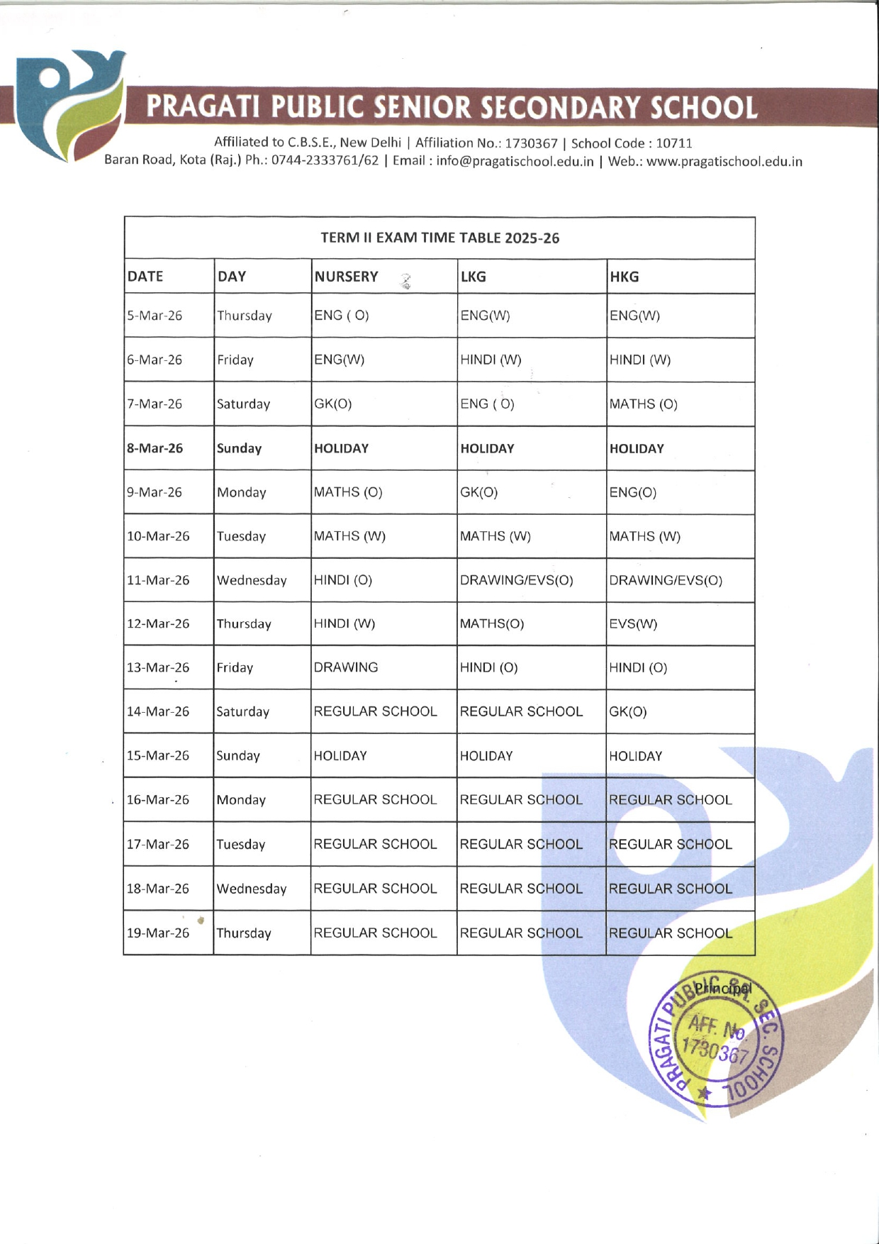 TERM II EXAM TIME TABLE (PRE-PRIMARY) 2023-24 Download