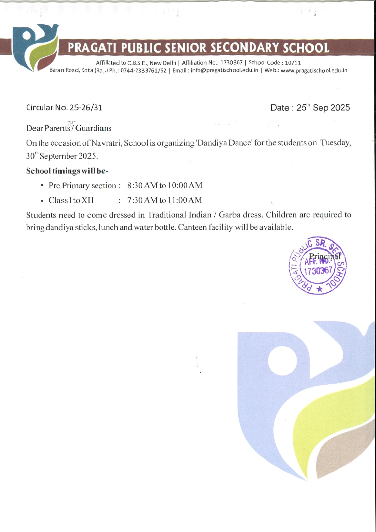 Pragati Public Senior Secondary School was started with the purpose that education should be available to each child uninterrupted.
