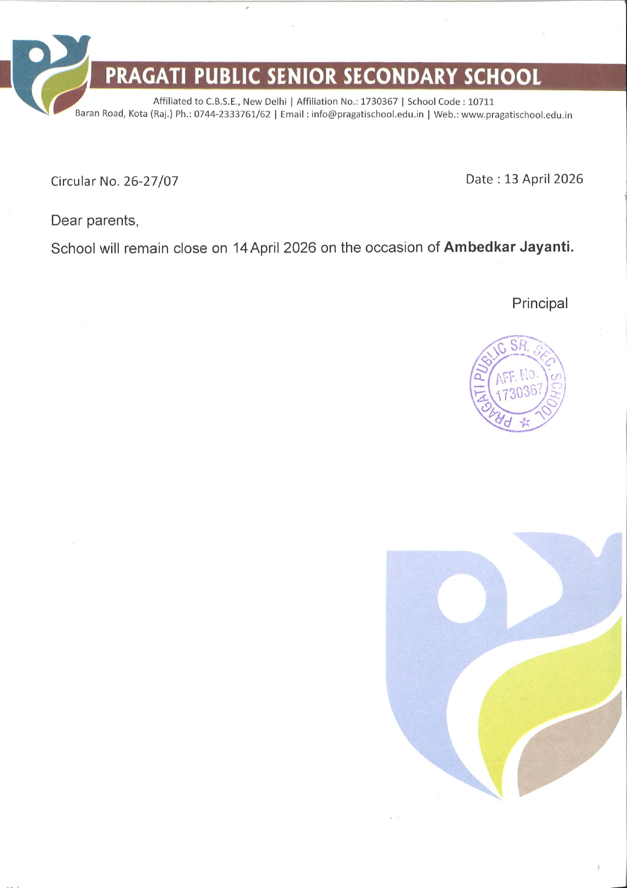 Under the age's of Pragati Group of Academies, Kota.