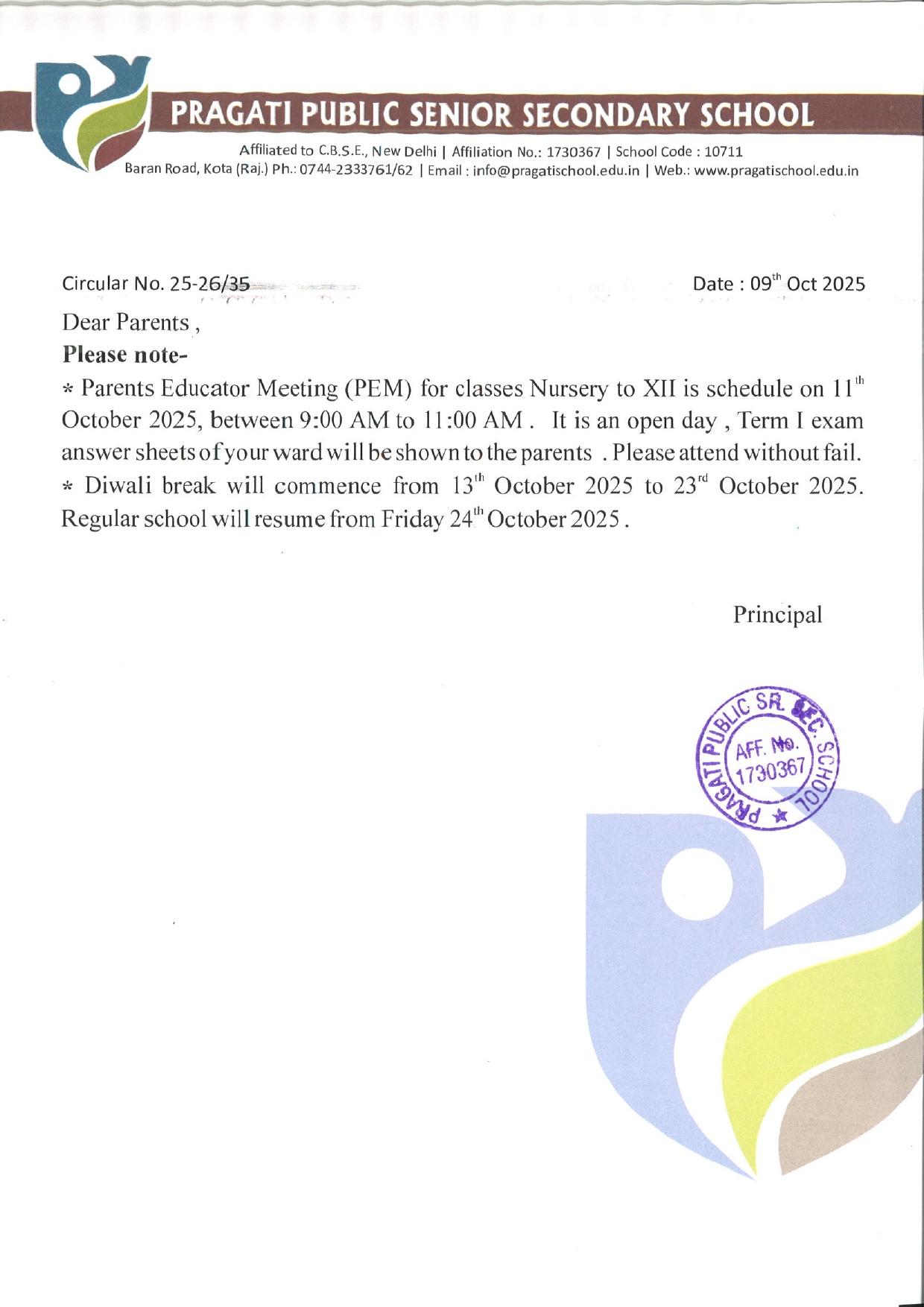 PARENTS EDUCATOR MEETING (PEM) DIWALI HOLIDAYS Download