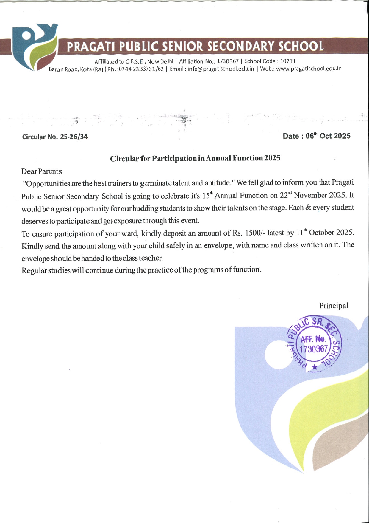 CIRCULAR FOR PARTICIPATION IN ANNUAL FUNCTION 2025 Download
