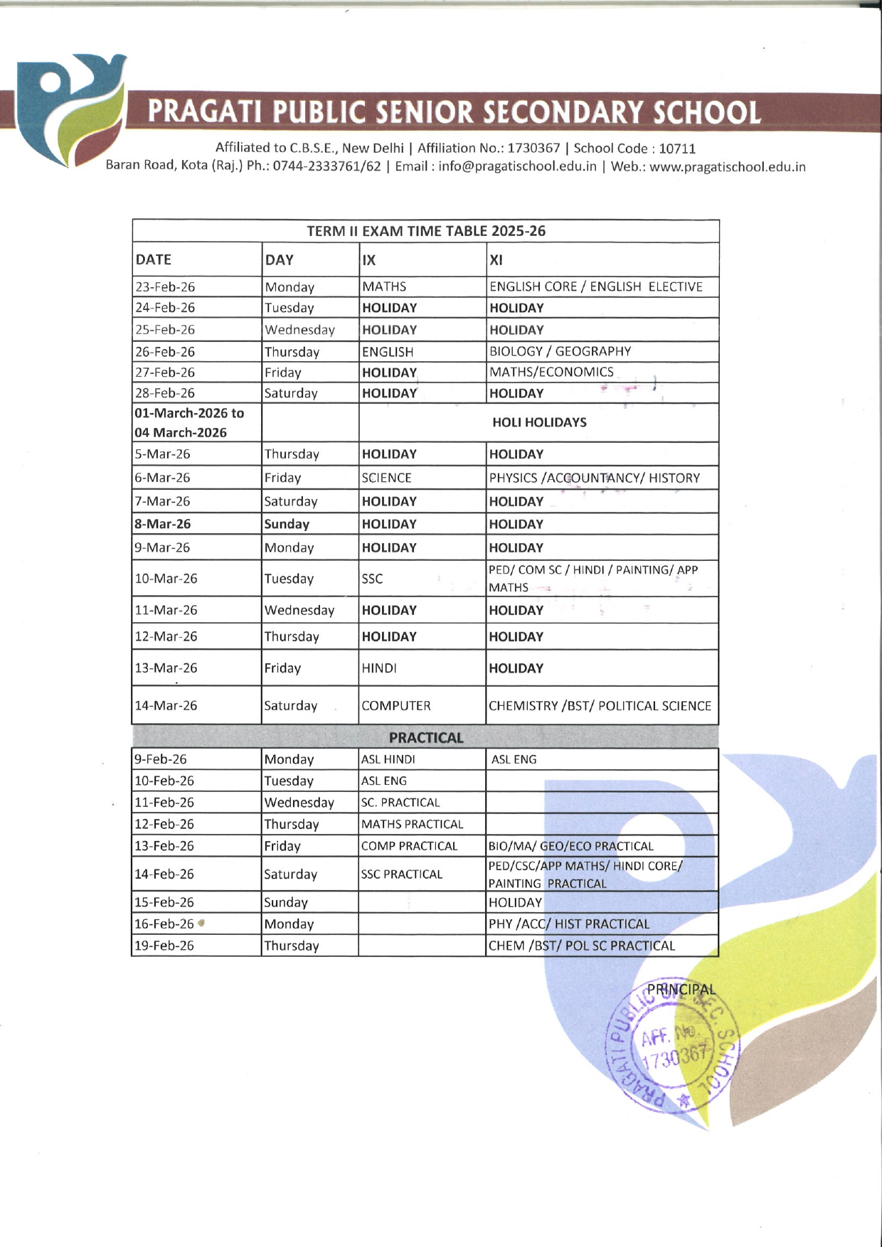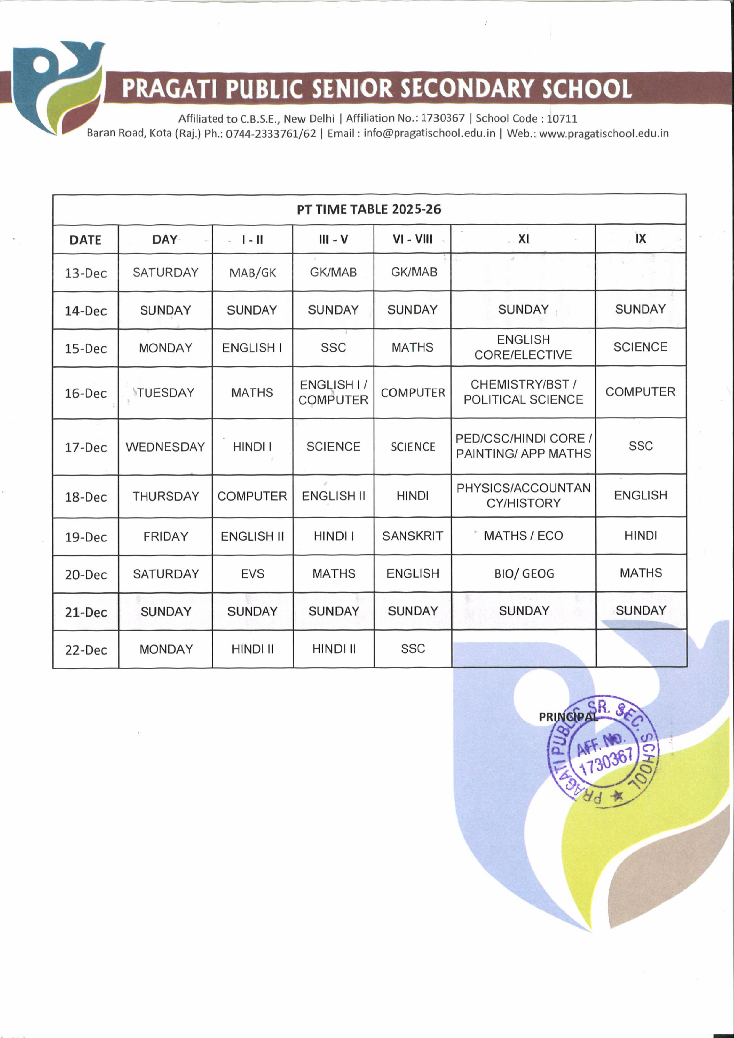 PT-02 TIME TABLE FOR CLASS IX TO XII Download