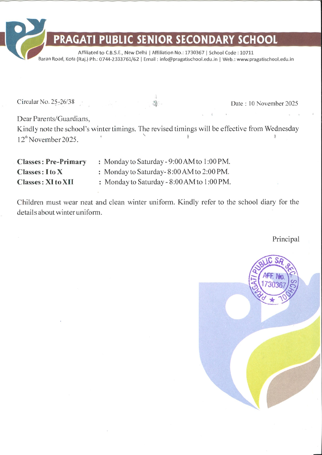 School Timing (for Classes I to IX & XI) Download