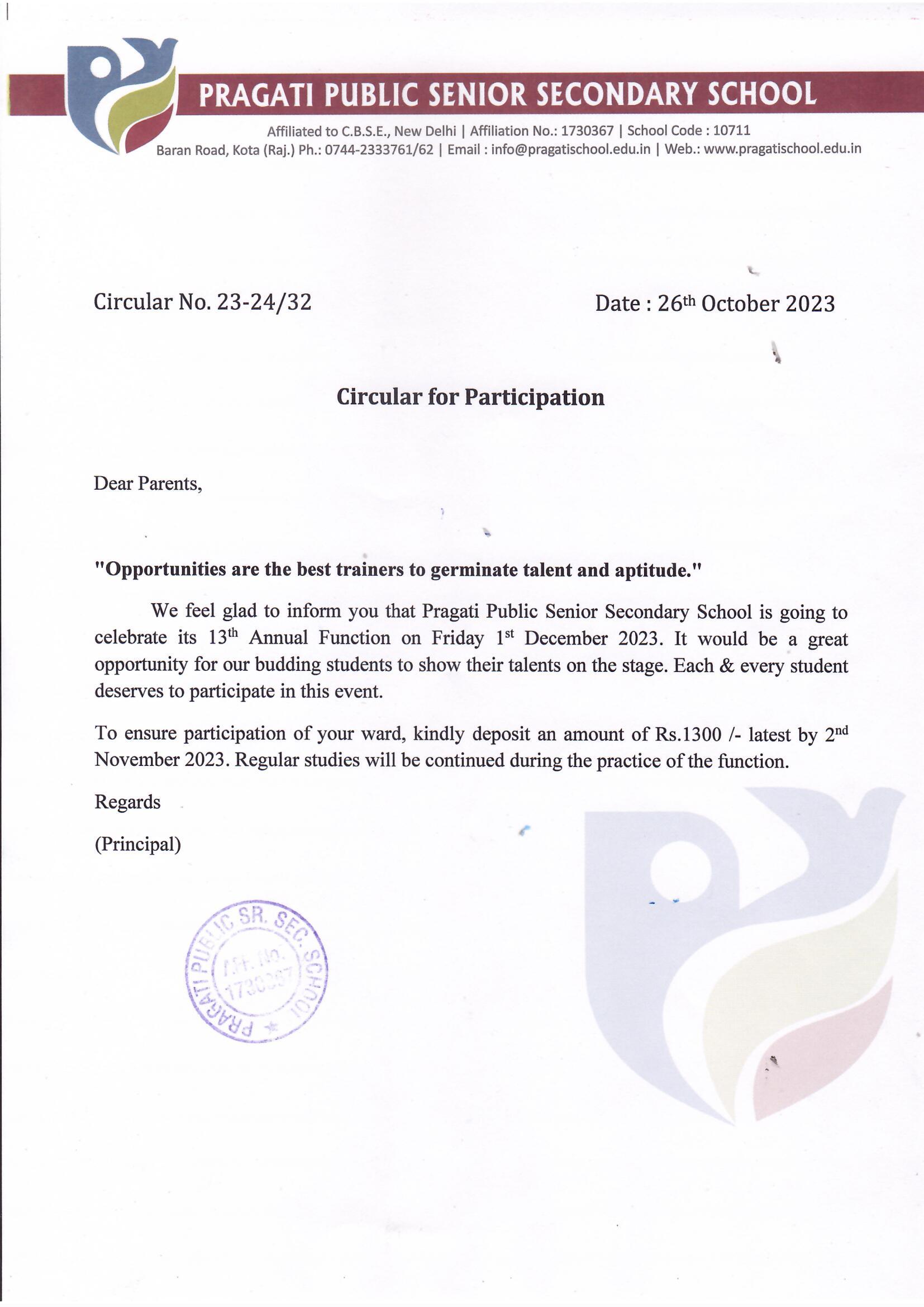 CIRCULAR FOR PARTICIPATION IN ANNUAL FUNCTION 2025 Download